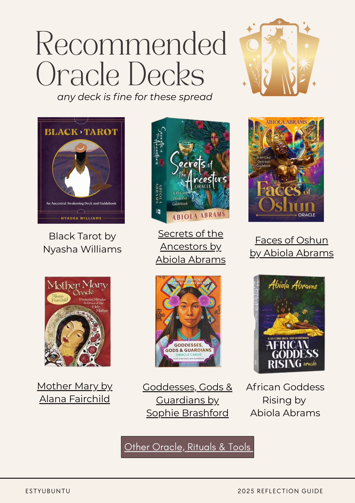 Each spread is optional and accessible, whether you’re new to oracle or have worked with cards for years. Any deck can be used, and recommended decks are shared if you want inspiration.